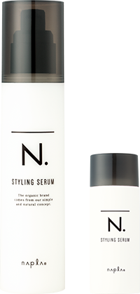 スタイリングセラムはシアバターとボタニカルエキスを配合。適量を手のひらにとり、よくのばしてからスタイリングを。ウェット時、ドライ時の両方で使え、濡れたような質感を与えます。