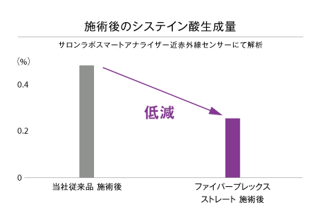 ファイバープレックス ストレートで施術した場合、従来品と比べてダメージの要因となるシステイン酸の生成量が46%低減していることが確認できました。