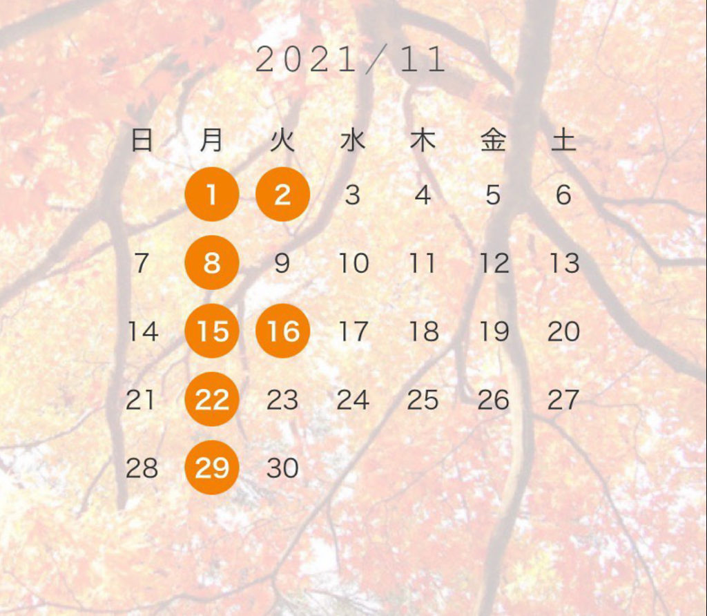 お知らせ 21年11月お休み waco2021年10月27日2021年10月27日 23日は17時まで営業させて頂きます。ご迷惑をお掛け致しますが、何卒よろしくお願い致します。 waco 投稿を作成しました 87